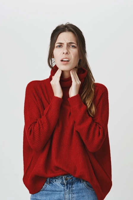 • Боль в горле становится постоянной и усиливается при глотании.